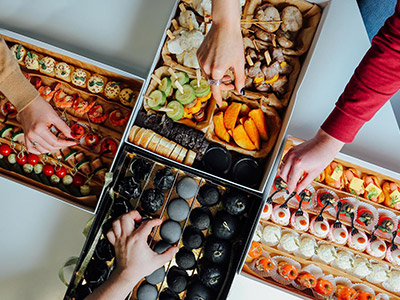 Це набір вишуканих фінгер-фудів в коробці. Чудово підходить для Дня народження в офісі чи для закритої вечірки, Happy Friday. Взяти з собою на пікнік, запросити друзів на посиденьки до дому.